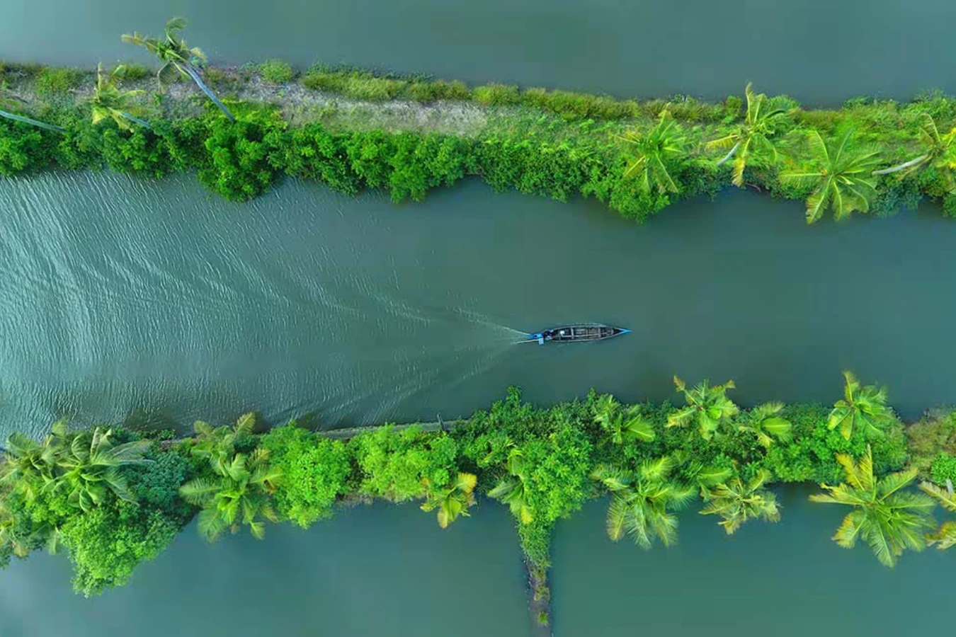 - Calm waterways surrounded by greenery and coconut palms