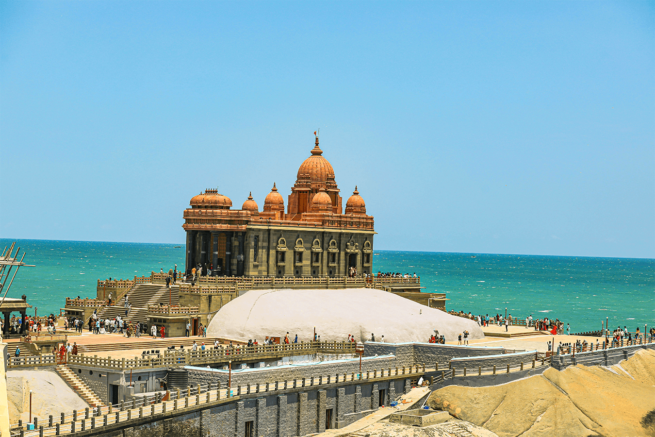 After breakfast proceed to Kanyakumari the southernmost point of peninsular India and the meeting point of three oceans-the Bay of Bengal, the Arabian Sea and the Indian Ocean. enroute visit the Padmanabhapuram Palace belonged to the Travancore kings, the erstwhile kings of Kerala. So it is built in the typical Kerala style of architecture, using stone and wood. Till date, it is maintained by the neighbouring state of Kerala, as a memorial to their ancient rulers. Marthanda Varma, one of the most famous Travancore kings, reconstructed the palace in around 1750. Padmanabhapuram served as the capital of the Travancore kingdom until 1795 when Thiruvananthapuram was made the new capital. Padmanabhapuram Palace provides an enchanting experience for history and architecture buffs, after visiting Padmanabhapuram palace depart to Kanyakumari Sightseeing covering the Kumari Amman Temples – a symbol of unity and sanctity .it dedicated to Parvathi as Devi Kanya the virgin goddess who did penance to obtain the hand of Lord Shiva. Vivekananda Rock Memorial- It was built in 1970. Vivekananda Rock Memorial is dedicated to Swami Vivekananda, Rock Memorial, a blend of all architectural styles of India. and nearby Vivekananda Rock Memorial. An imposing Memorial of Thiruvalluvar. Triveni Sangamam and Devi End your day by watching the spectacular sunset there, return to Kovalam Overnight stay will be at Kovalam.